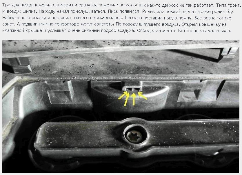 ПРОШУ ПОМОЩИ У ЗНАТОКОВ И БЫВАЛЫХ КТО СТАЛКИВАЛСЯ С ДАННОЙ ПРОБЛЕМОЙ! ПО ПОРЯДКУ. ЗАКОЛБАСИЛО АВТО НА ПРОГРЕТОМ ДВИГАТЕЛЕ ПОЯВИЛОСЬ ХАРАКТЕРНОЕ ШИПЕНИЕ РВАНОЙ МЕМБРАНЫ ЕГР ВЫСКОЧИЛ ДЖЕКИЧАН НА ПРИБОРКЕ ПРОБКУ МАСЛ ГОРЛОВИНЫ ОТКРЫТЬ НЕ ВОЗМОЖНО. ПОСЛЕ ШТУДИРОВАНИЯ ФОРУМОВ ПОМЕНЯЛ МЕМБРАНУ ЕГР ШИПЕНИЕ УШЛО НО ПРОБКУ ЗАЛИВА МАСЛА ПО ПРЕЖНЕМУ ВСАСЫВАЕТ УЖ СЛИШКОМ СИЛЬНО, ОБОРОТЫ ПЛАВАТЬ СТАЛИ И НА ХОЛОДНУЮ ПРОЕХАЛ ГДЕ-ТО 200-300КМ ЗАМЕТИЛ ЛУЖУ МАСЛА ПОД МАШИНОЙ СО СТОРОНЫ ГРМ (ПОДОЗРЕВАЮ ВЫДАВИЛО САЛЬНИК ПОД ШКИВОМ КАЛЕНВАЛА) ОШИБКА 017011 ПОСЛЕ ТОГО КАК ВЫДАВИЛО МАШИНА СТАЛА РАБОТАТЬ РОВНЕЕ.....