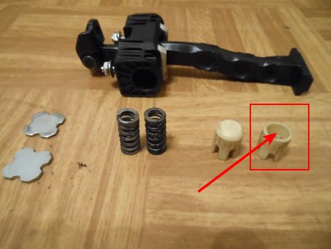 всем спасибо за помощь. уже сам сделал. Там белый стаканчик под пружиной изтерся и пружина начала ширкать по этой самой палке. Заделал отверстие и все назад поставил.