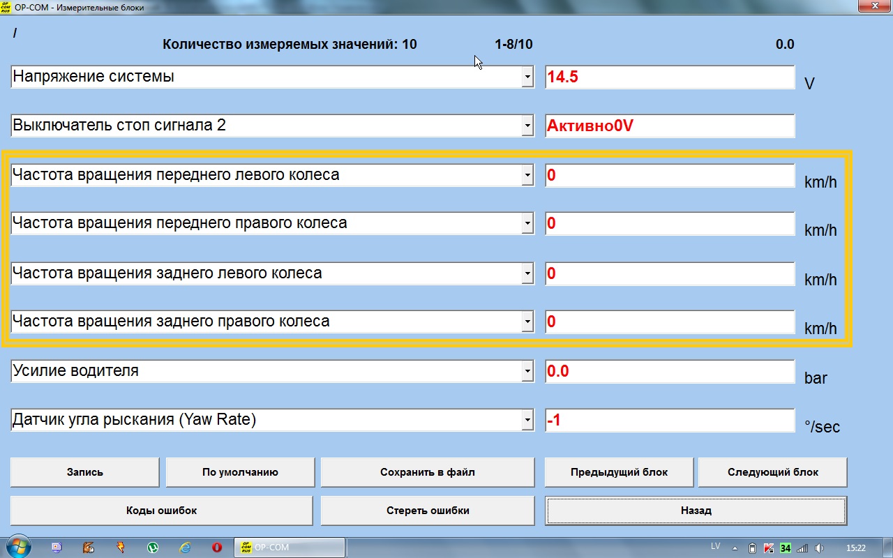 Сегодня проверили работу ABS OP-COM в движении, специалист сказал, что OP-COM не видит вращения переднего правого колеса. Нужно менять ступицу с датчиком ABS.