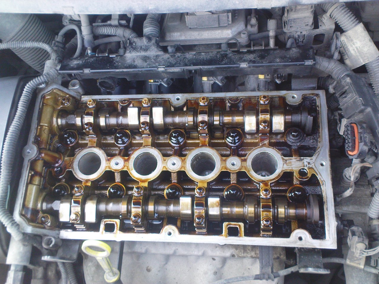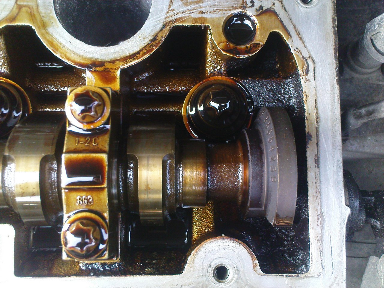 Я тут на днях менял прокладку клапанной крышки (начала подтекать), и обнаружил, что с правой стороны где балансиры распредвалов, масла нет, они сухие и какой то нагар что ли, или это масло высохло. На фотках видно. Это норма? Кто нибудь сталкивался? |