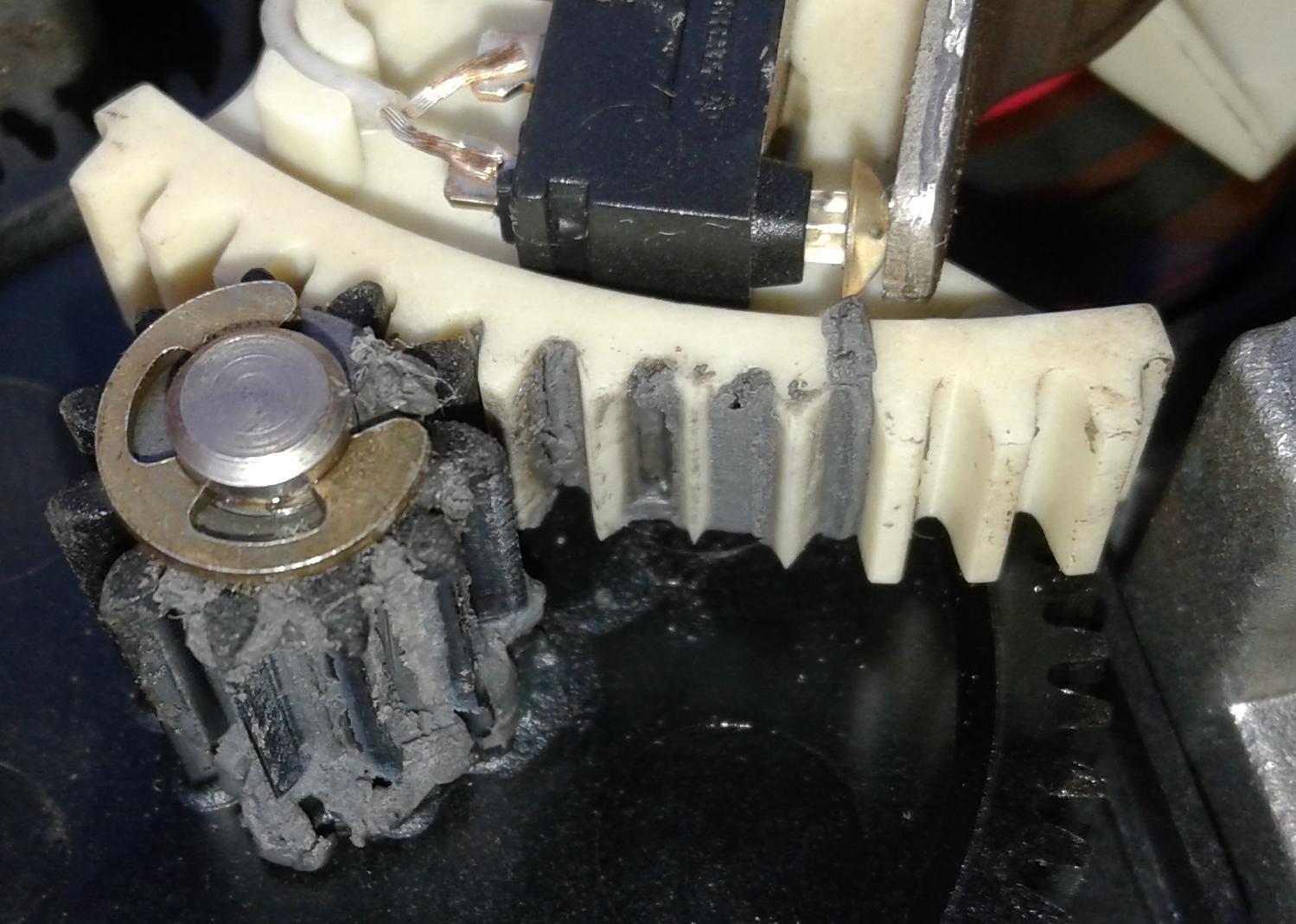 Разобрал дроссель. Все вроде на месте. Микрик работает четко, не залипает. Потенциометры при повороте заслонки сопротивление свое меняют. Как я понял, один отслеживает поворот заслонки от педали, другой - от электромотора. Имеет место сильный износ зубьев шестеренок. Из-за чего ведущая шестерня имеет небольшой поворот вхолостую, но зубья не проскакивают, просто выбираются зазоры. Покрутив их взад-вперед, предположил, что какого-то особого влияния на работу узла это оказывать не должно. Зацепление не пропадает, и моторчик просто должен прокрутить шестерню чуток побольше. Вот такая вот ситуевина - все работает, но результат на выходе не тот.