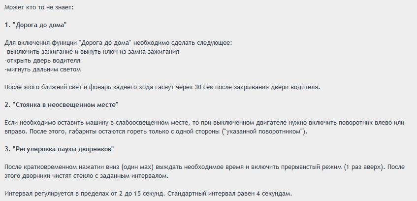 У Зафиры есть некоторые негласные сервисные функции, типа оставленный горящий габарит, освещенная дорога домой, вертикальные дворники т.д. Есть очень полезные вещи, как например вертикальные дворники, зимой не примерзают к стеклу. Вот из архива, читайте