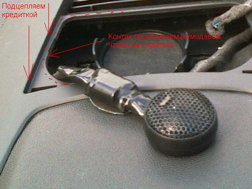 Снятие решетки 7 динамика. На второй фотке видны места защелок. Весь кантик под решеткой по окружности обклеиваем шумодавом