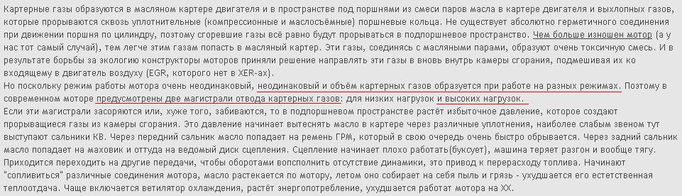 2007,1,8 xer,МКП. При езде под горку (в натяжку) иногда дымит голубоватым дымом с запахом масла и после задымки высвечивает уровень масла........ Отключили сапун - перестало дыметь. Если это датчик дает сбой, подскажите какой??? На диагностике - все работает.