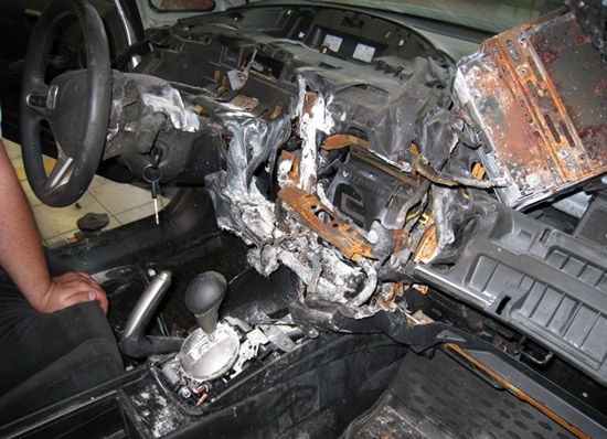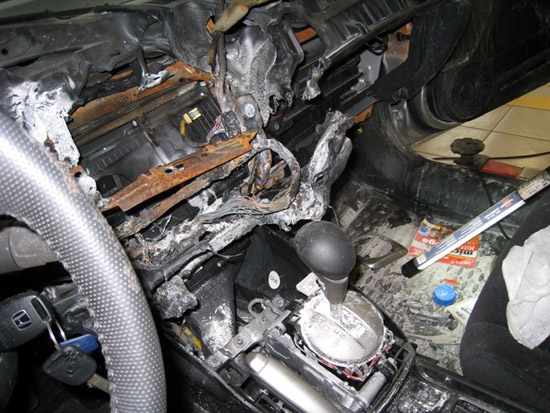 По мнению экспертов, в салоне автомобиля находилось, как минимум 2-а устройства для подключения потребителей к бортовой сети автомобиля, что говорит о том, что за период эксплуатации более 9-ти месяцев (с 06.10.2007 по 31.07.2008 года) гнездо штатного прикуривателя автомобиля использовалось для подключения посторонних потребителей с чрезмерно длительным протеканием электрического тока, не предусмотренные заводом изготовителем, что привело к тепловому старению изоляции электропроводов с последующим возгоранием.