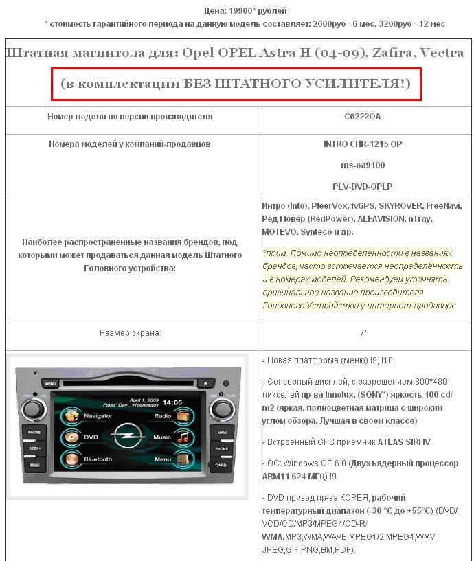 Я меньше 25000 нигде не нашел, или это старые данные какие-то? А про усилитель я понимаю так, что это какая-то ошибка. В любой магнитоле есть встроенный штатный усилитель, да он не очень мощный, но он есть. А в данном случае, тут наверно опечатка , и имелось ввиду, что без штатного НАВИГАТОРА, потому что джойстик навигатора располагается на панели магнитолы! И при замене магнитолы, управление навигатором пропадет. На этих же мультимедийных системах нет такого джойстика! Сколько я не лазил по сайтам, описания везде одинаковые, эти продавцы просто сдули его с главного сайта производителя, и все! дело в шляпе, продажи идут! Я думаю, там в описании еще есть какие-то неточности, да ну ладно, буду брать короче!
