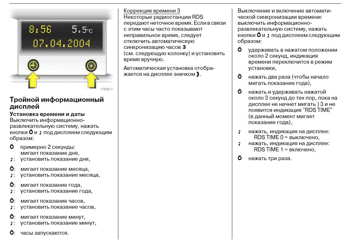 На Б-шке-если дисплей BID (две или три строки), то также кнопками под дисплеем. Если GID (монохромный) или CID (цветной), то через кнопку на магнитоле Setting-> Time