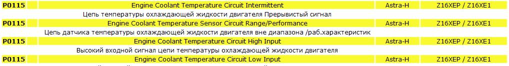 Неисправность цепи датчика температуры двигателя (охлаждающей жидкости)