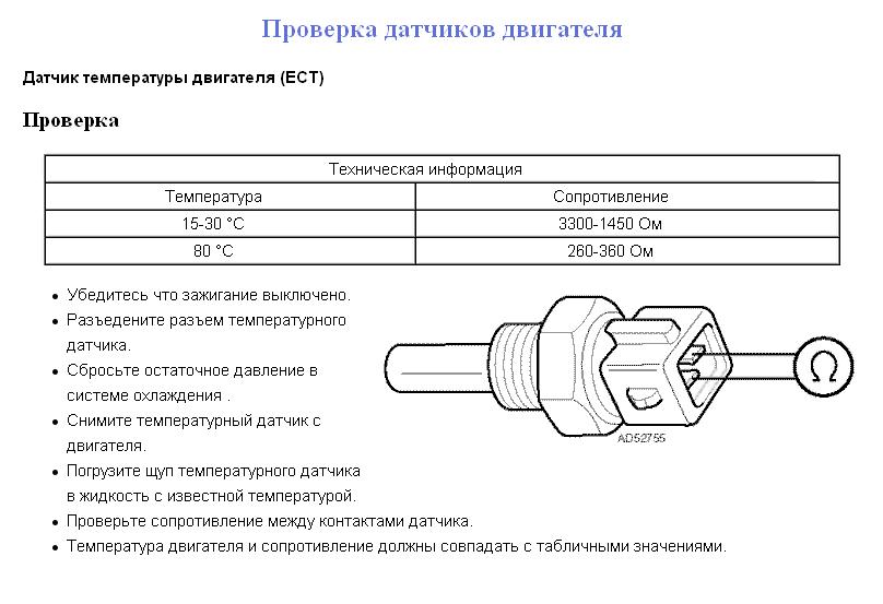 Если в разъем резистор вставлю кОм 5 - 7, мозги обману? Может это датчик на вкл./выкл. клапана термостата? Он ведь стоит рядом с ним. Я и сам уже думал, что 16 Ом маловато. Привезут задний датчик - попробую, сообщу. Если с него просто разъем сдерну, никаких особых последствий не будет?